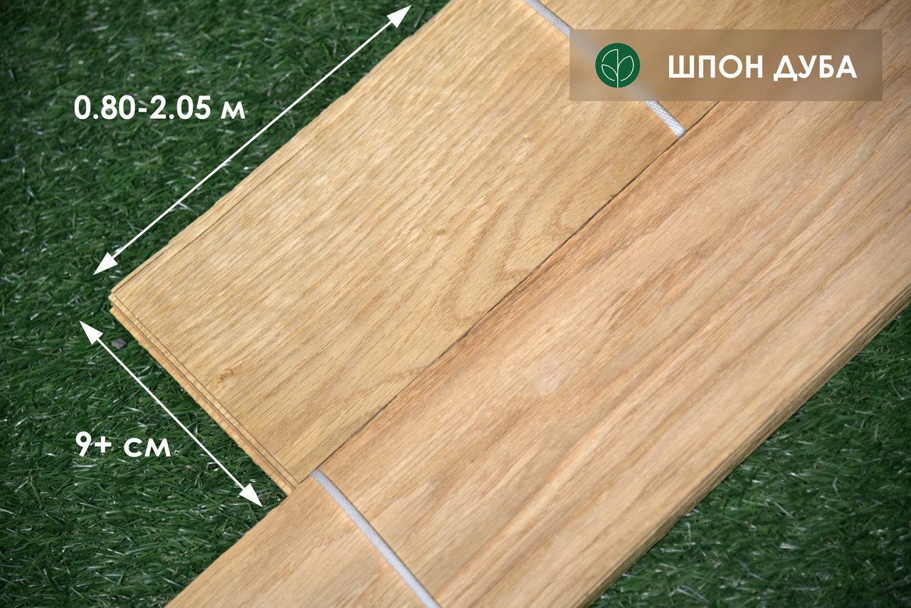 Натуральний шпон дуба – це пиломатеріал, який при правильній обробці стійкий до появи грибка та плісняви. Дубовий шпон витримує значне експлуатаційне навантаження. Тонкі листи розрізають, шліфують, полірують. Щоб підкреслити природну красу малюнка та фактури деревини, її відбілюють або покривають морилками, восками, лаками.