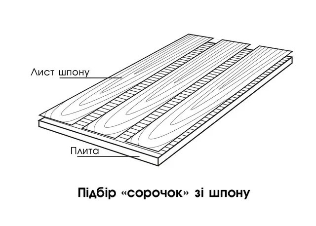 Наші майстри професійно виконують підбір шпону за візерунком, тоном, напрямом волокон для подальшого нанесення на ДСП, МДФ, фанеру. «Сорочки» зі шпону клена сікомора використовують для оздоблення фасадів, стільниць, настінних панелей та панно, шахівниць, музичних інструментів, скриньок тощо.