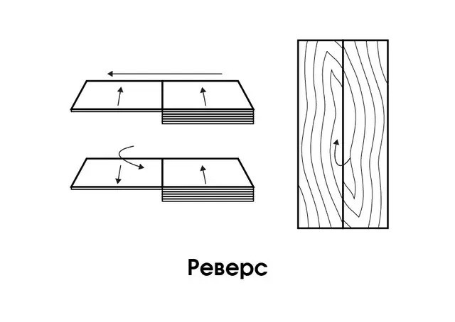 «Сорочка» набирається з однієї пачки шпону. Візерунок отримують завдяки тому, що кожен другий лист перевертають на 180° лицьовим боком вгору. Реверсний набір забезпечує однорідний малюнок і тон полотна.
