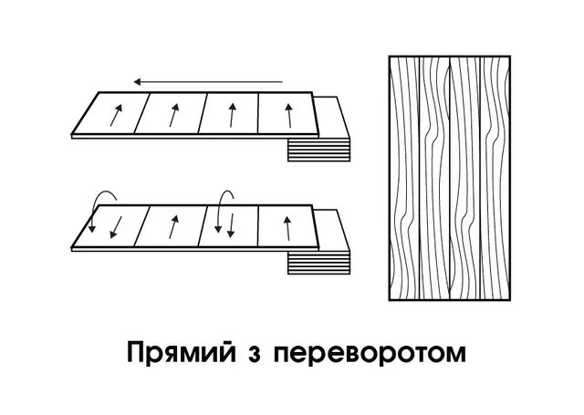 «Сорочка» набирається з однієї пачки шпону. Кожний наступний лист знімають не перевертаючи. При прямому наборі розбіжності у тоні та структурі шпону мінімальні або взагалі відсутні.