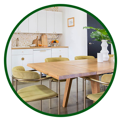 Виконані зі шпонованих шаруватих плит комоди, шафи, настінні шафки, пенали, тумбочки – надійні та зручні у використанні меблі. Деревина дуба вписується в сучасні та традиційні інтер'єри. З листів фанери також виготовляють письмові столи, журнальні, приставні, кавові столики.
