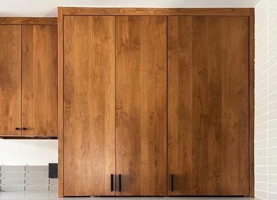 Фасадні ламелі груші дозволяють створити унікальні корпусні меблі. Завдяки достатній товщині на поверхні облицьованих пиляним шпоном фасадів виконують фрезерування, брашування. Крім того, з ламелі із груші створюють фасади-жалюзі для гардеробних та інших зон зберігання. Декоровані дверцята шаф, комодів, тумб, пеналів ― важливий елемент для реалізації індивідуальних дизайн-проєктів.