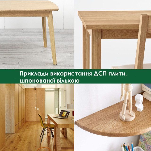 Облицьовані натуральним шпоном панелі ДСП активно використовують під час облаштування житлових і громадських приміщень. Зі шпонованого плитного матеріалу виготовляють:
